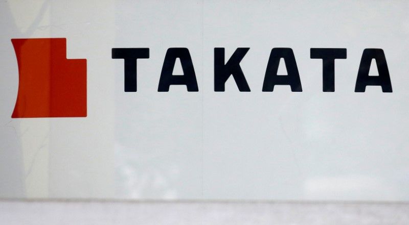FILE PHOTO: The logo of Takata Corp is seen on its display at a showroom for vehicles in Tokyo, Japan, February 9, 2017. REUTERS/Toru Hanai/File Photo
