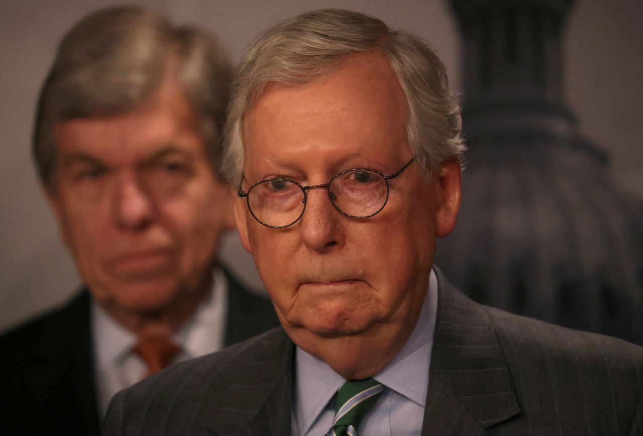 FILE PHOTO: U.S. Senate Minority Leader Mitch McConnell (R-KY) takes part in a news conference held by Republican senators about the "H.R.1 - For the People Act" bill on Capitol Hill in Washington, U.S., June 17, 2021. REUTERS/Leah Millis