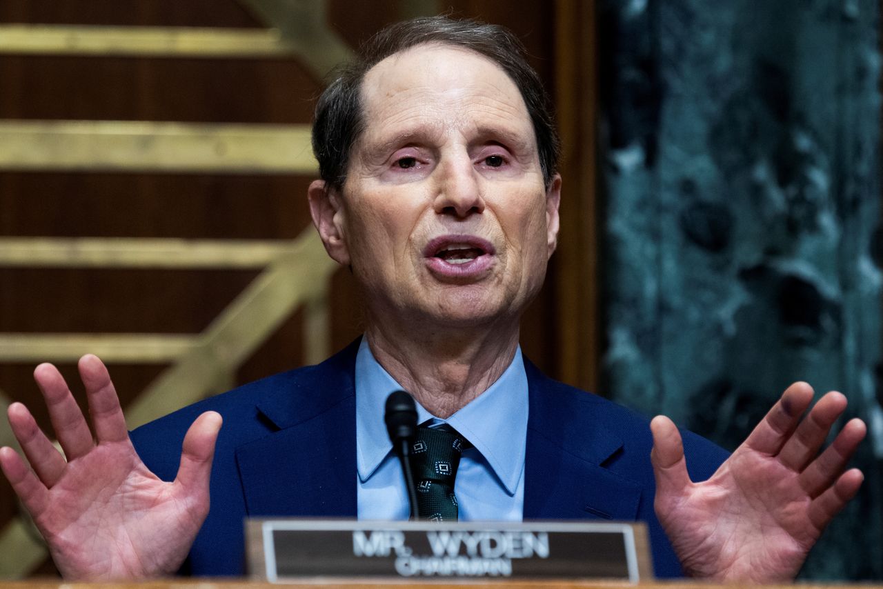 FILE PHOTO: U.S. Senate Finance Committee Chairman Ron Wyden (D-OR) questions Charles P. Rettig, commissioner of the Internal Revenue Service, during the Senate Finance Committee hearing titled The IRS Fiscal Year 2022 Budget, in Dirksen Senate Office Building in Washington, D.C., U.S., June 8, 2021. Tom Williams/Pool via REUTERS