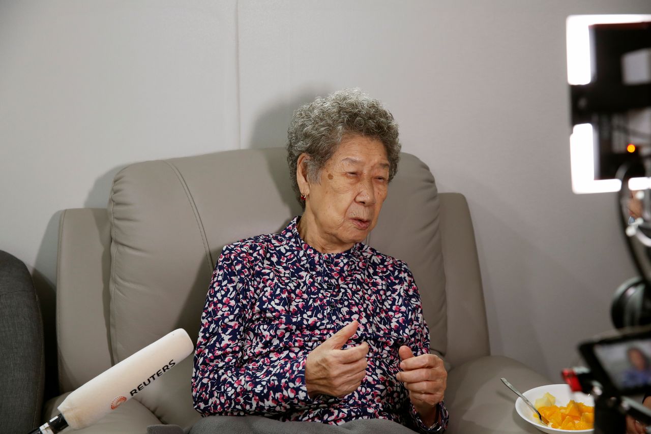 Former South Korean "comfort woman" Lee Ok-sun speaks during an interview with Reuters at the House of Sharing in Gwangju-si, Gyeonggi-do, South Korea, May 4, 2021. Picture taken May 4, 2021. REUTERS/Heo Ran