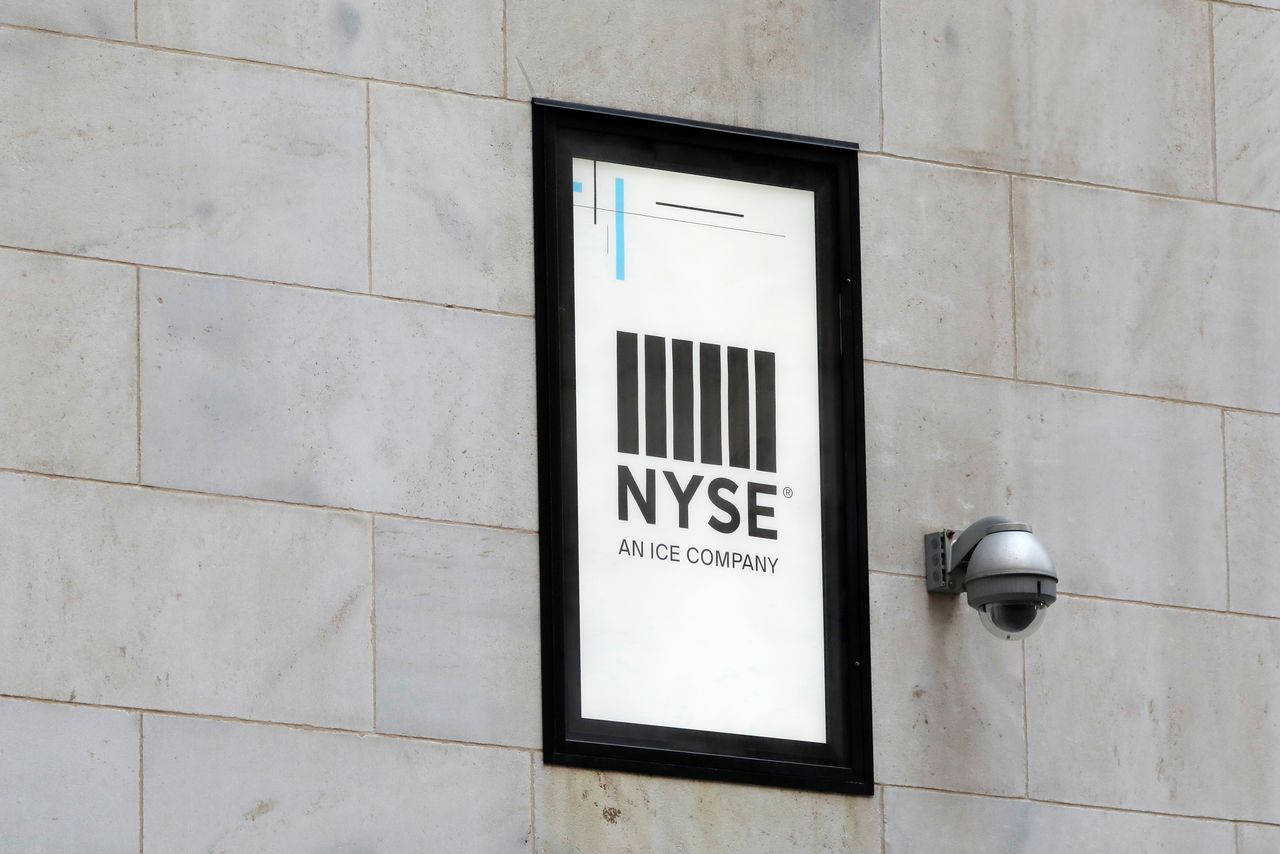 FILE PHOTO: A security camera is seen next to signage outside of the New York Stock Exchange (NYSE) in New York City, New York, U.S., June 28, 2021. REUTERS/Andrew Kelly