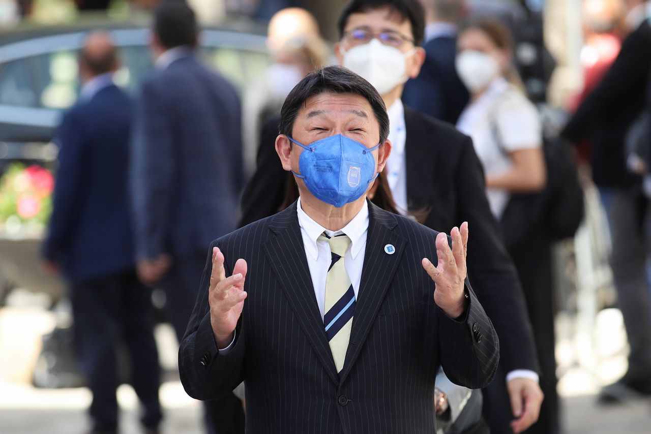 FILE PHOTO: Japan's Foreign Minister Toshimitsu Motegi arrives to attend the G20 meeting of foreign and development ministers in Matera, Italy, June 29, 2021. REUTERS/Yara Nardi