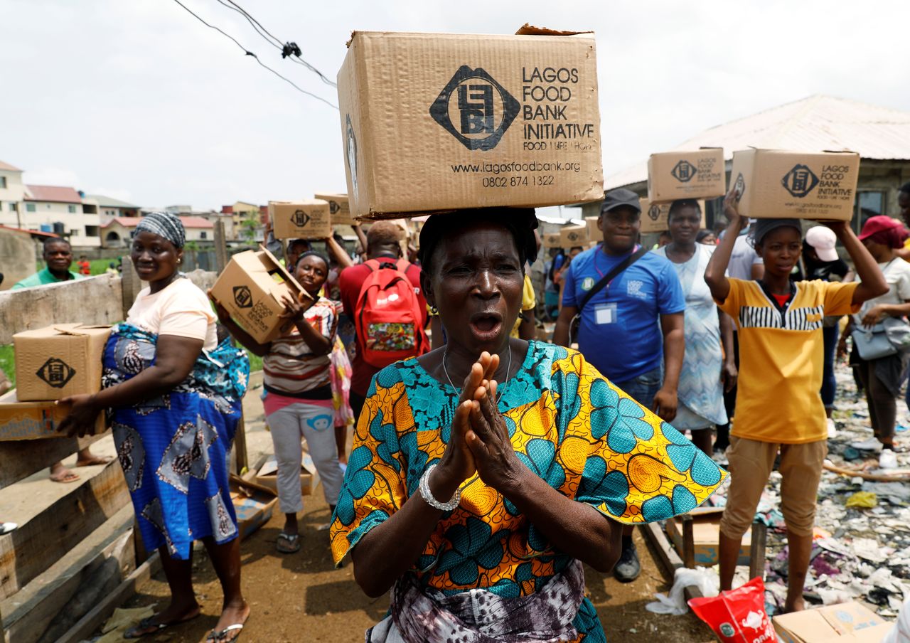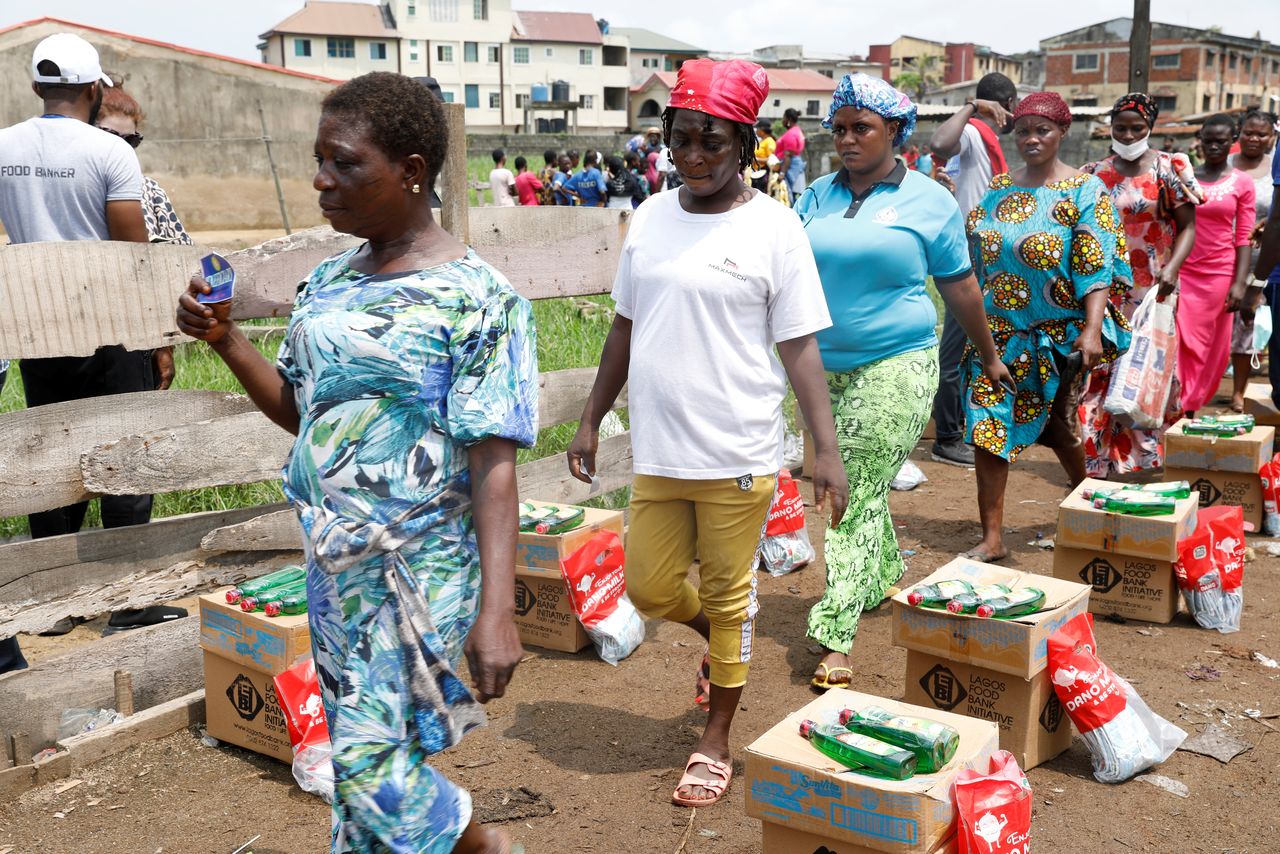 On a cloudy Saturday afternoon, dozens of women lined up in the Oworonshoki neighbourhood on the edge of the Lagos lagoon as the Lagos Food Bank Initiative distributed packs of rice, oil and other essentials.