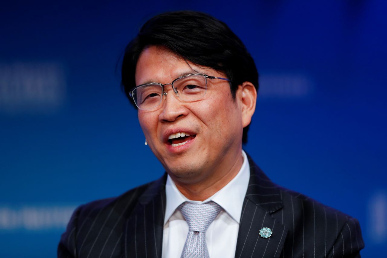FILE PHOTO: Hiromichi Mizuno Executive Managing Director and Chief Investment Officer at Government Pension Investment Fund in Japan and Co-Chair at Global Capital Markets Advisory Council for Milken Institute, speaks during the Milken Institute's 22nd annual Global Conference in Beverly Hills, California, U.S., May 1, 2019. REUTERS/Mike Blake