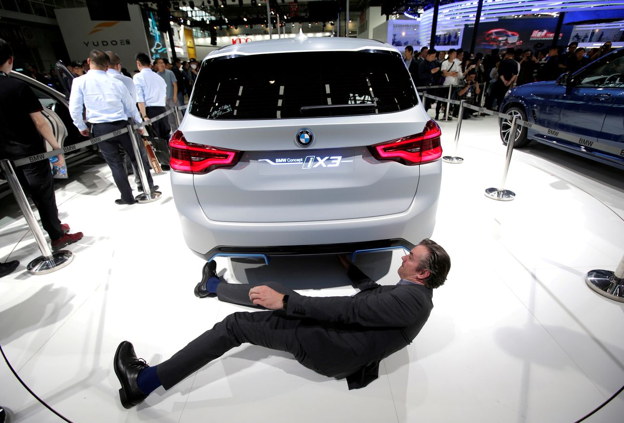 FILE PHOTO: A man checks the BMW iX3 electric concept car during a media preview at the Auto China 2018 motor show in Beijing, China April 25, 2018. REUTERS/Jason Lee/File Photo