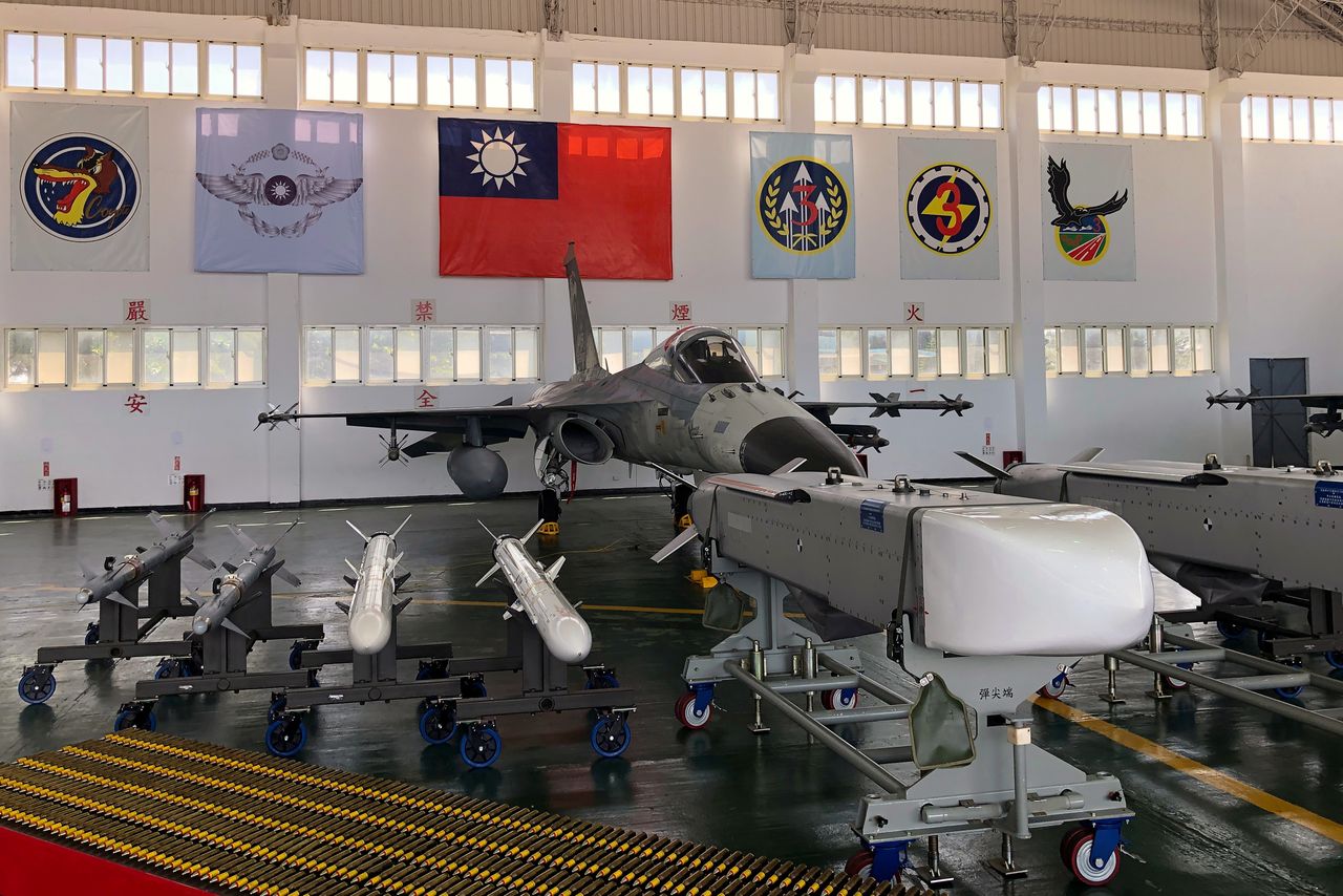 FILE PHOTO: An Indigenous Defense Fighter (IDF) fighter jet and missiles are seen at Makung Air Force Base in Taiwan's offshore island of Penghu, September 22, 2020. REUTERS/Yimou Lee