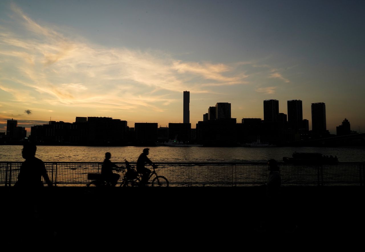 FILE PHOTO: A silhouette of the 2020 Tokyo Olympic Games Athletes' Village is seen in Tokyo, Japan, July 19, 2021. REUTERS/Naoki Ogura