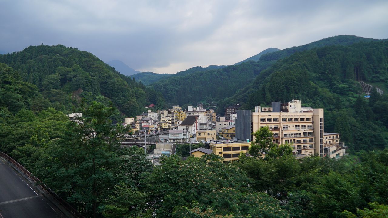 The town of Tsuchiyu Onsen Machi is seen embedded among the mountains, Fukushima, Fukushima Prefecture, Japan July 20, 2021. REUTERS/Joseph Campbell