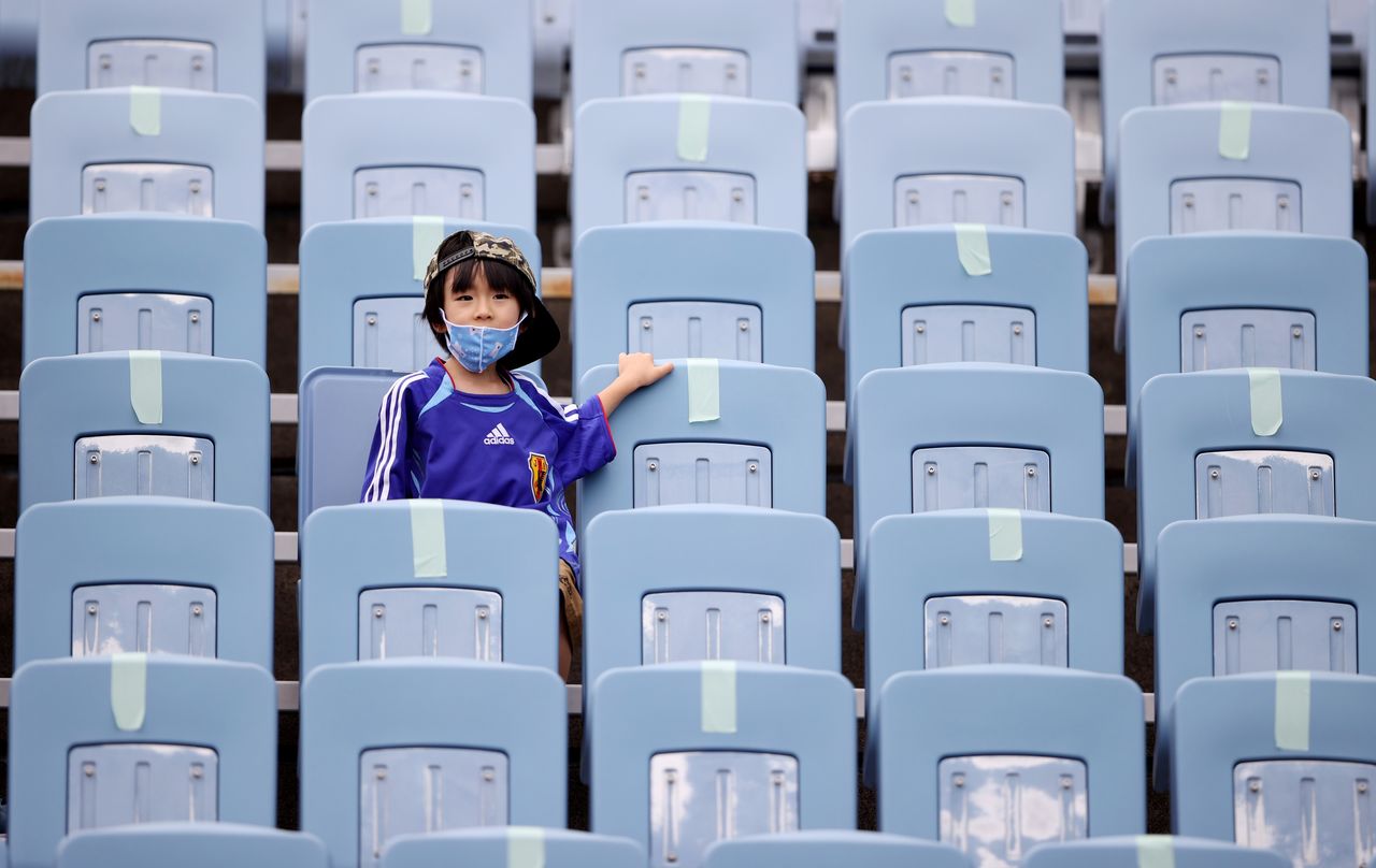 Tokyo 2020 Olympics - Soccer Football - Women - Group F - China v Brazil - Miyagi Stadium, Miyagi, Japan - July 21, 2021. A young fan wears a face mask inside the stadium before the match REUTERS/Molly Darlington