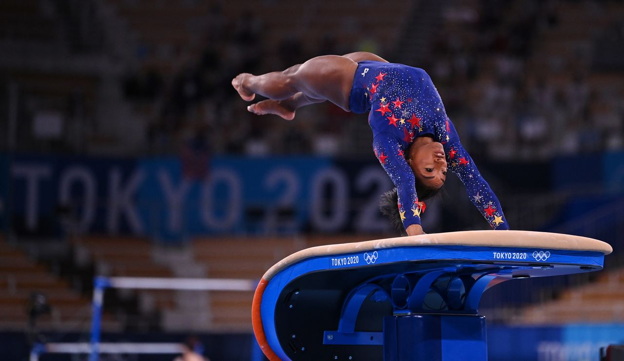 Tokyo 2020 Olympics - Gymnastics - Artistic - Women’s Vault - Qualification - Ariake Gymnastics Centre, Tokyo, Japan - July 25, 2021. Simone Biles of the United States in action on the vault. REUTERS/Dylan Martinez TPX IMAGES OF THE DAY