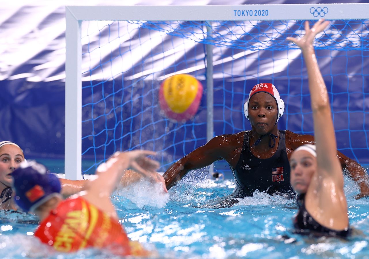 Tokyo 2020 Olympics - Water Polo - Women - Group B - United States v China - Tatsumi Water Polo Centre, Tokyo, Japan – July 26, 2021. Ashleigh Johnson of the United States in action. REUTERS/Kacper Pempel