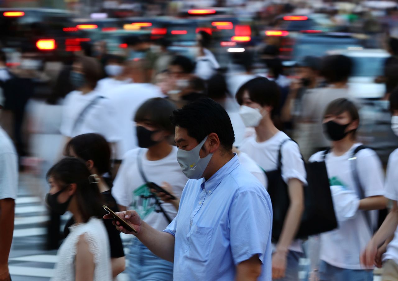 Pedestrians wearing protective masks amid the coronavirus disease (COVID-19) outbreak, make their way in Tokyo, Japan, July 27, 2021. REUTERS/Kim Kyung-Hoon