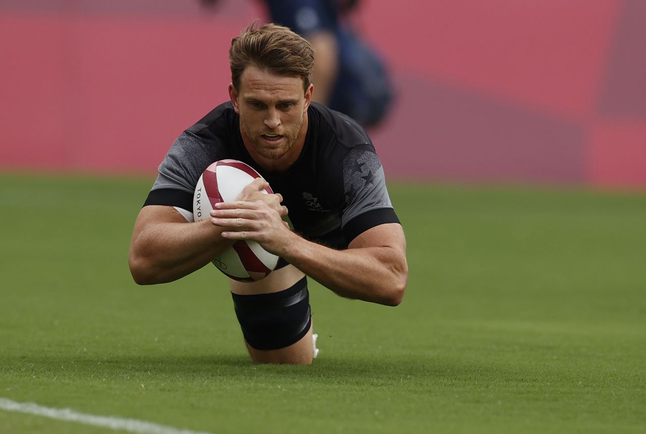 Tokyo 2020 Olympics - Rugby Sevens - Men - Semifinal - New Zealand v Britain - Tokyo Stadium - Tokyo, Japan - July 28, 2021. Scott Curry of New Zealand scores a try. REUTERS/Phil Noble
