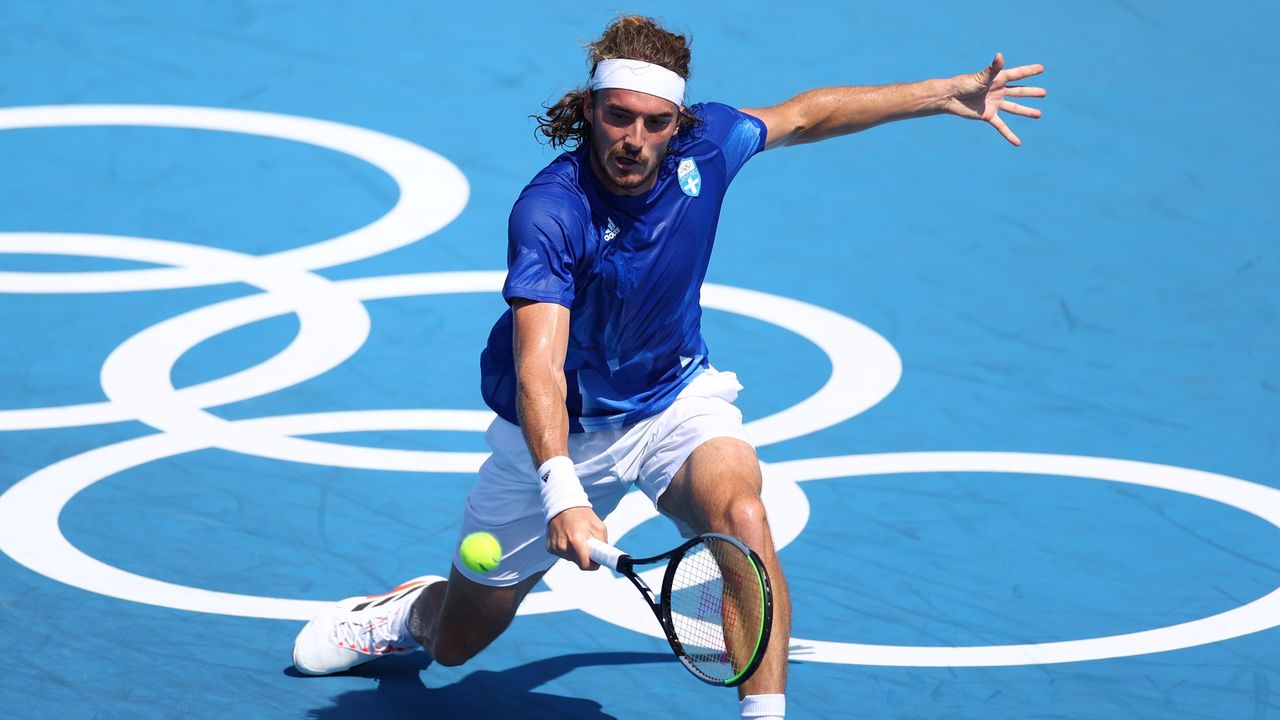 Tokyo 2020 Olympics - Tennis - Men’s Singles - Round 3 - Ariake Tennis Park - Tokyo, Japan - July 28, 2021. Stefanos Tsitsipas of Greece in action during his third round match against Ugo Humbert of France REUTERS/Edgar Su