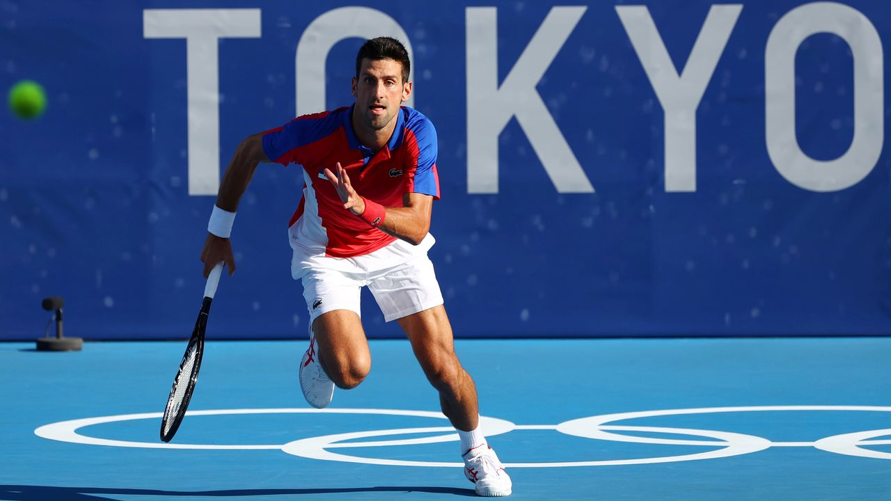 Tokyo 2020 Olympics - Tennis - Men’s Singles - Round 3 - Ariake Tennis Park - Tokyo, Japan - July 28, 2021. Novak Djokovic of Serbia in action during his third round match against Alejandro Davidovich of Spain REUTERS/Mike Segar