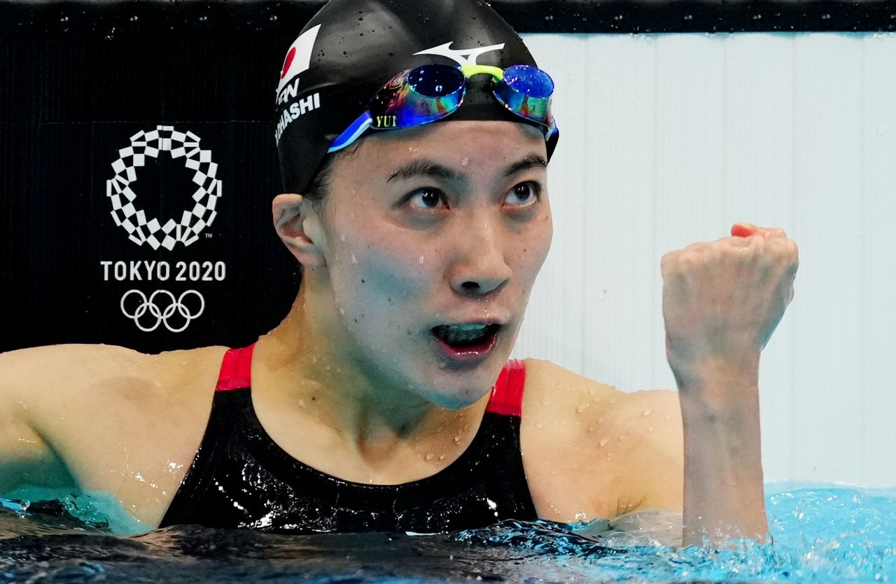 Ohashi let out a cheer and pumped her hand in the air after touching the wall and she said it was still hard to believe she was Olympic champion.