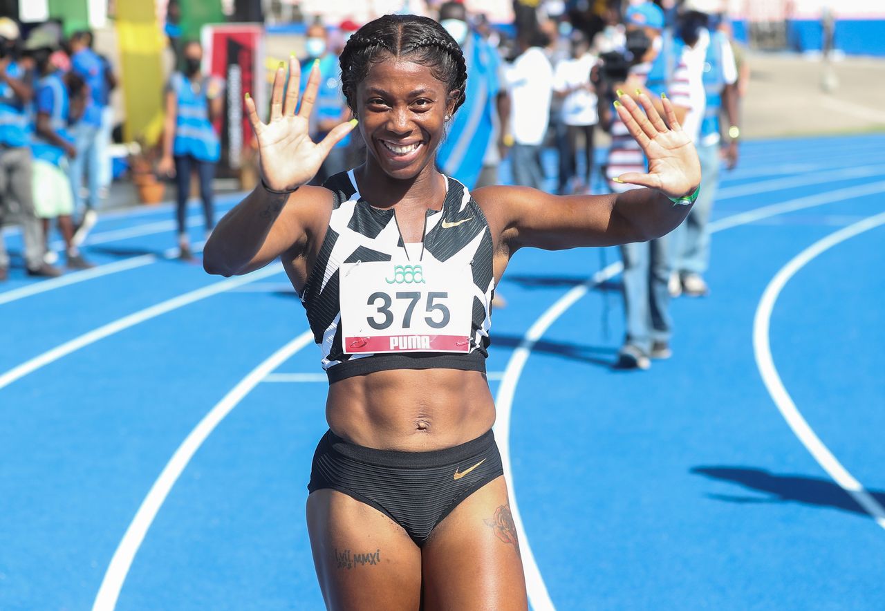 FILE PHOTO: Athletics - JAAA National Senior Championships - National Stadium, Kingston, Jamaica - June 27, 2021 Jamaica’s Shelly-Ann Fraser-Pryce celebrates after winning the women’s 200 m REUTERS/Gilbert Bellamy