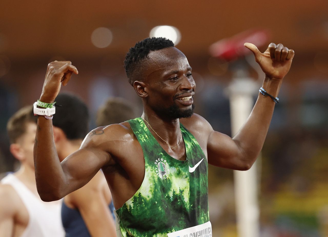 Athletics - Diamond League - Monaco - Stade Louis II, Monaco - July 9, 2021 Botswana's Nijel Amos celebrates winning the men's 800m REUTERS/Gonzalo Fuentes