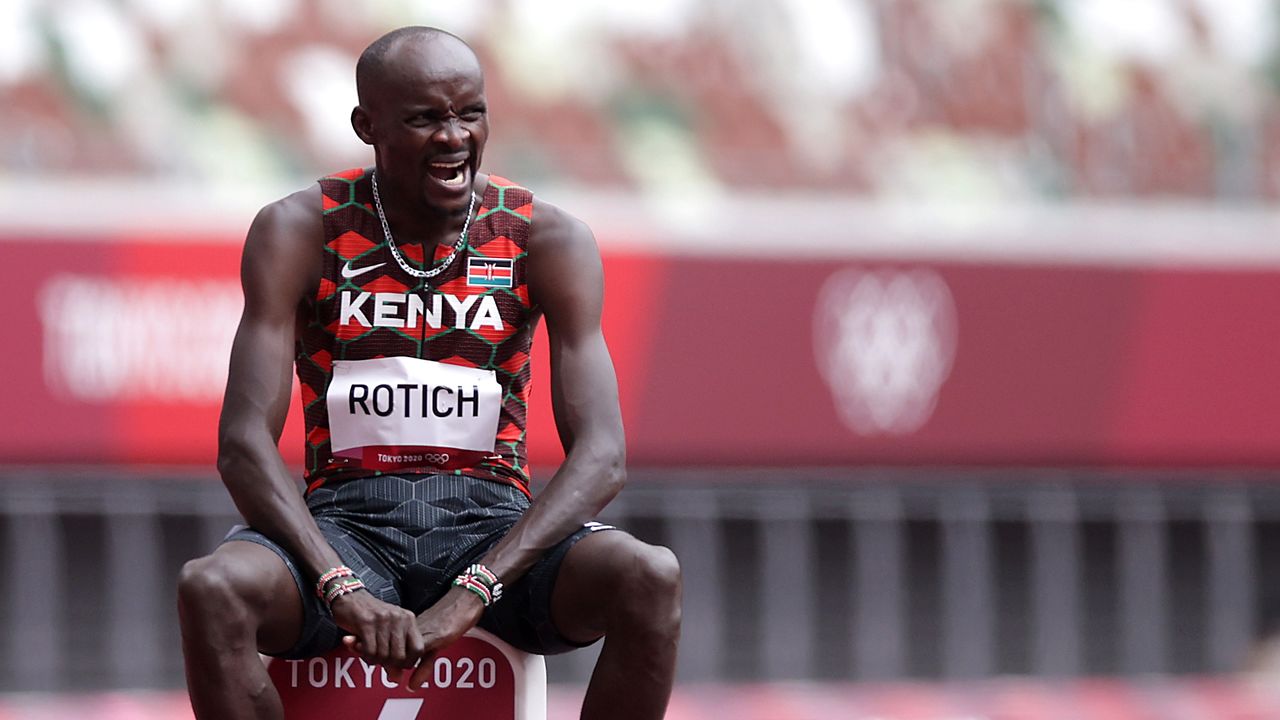 Tokyo 2020 Olympics - Athletics - Men's 800m - Round 1 - OLS - Olympic Stadium, Tokyo, Japan - July 31, 2021. Ferguson Rotich of Kenya reacts before competing in Heat 1 REUTERS/Hannah Mckay