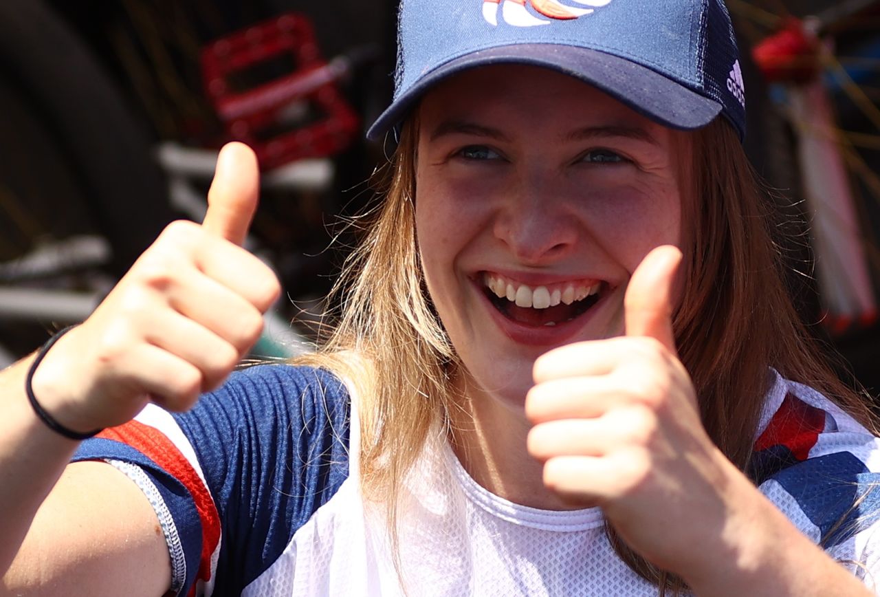 Tokyo 2020 Olympics - BMX Freestyle - Women's Park - Final - Ariake Urban Sports Park, Tokyo, Japan - August 1, 2021. Charlotte Worthington of Britain celebrates winning gold. REUTERS/Matthew Childs