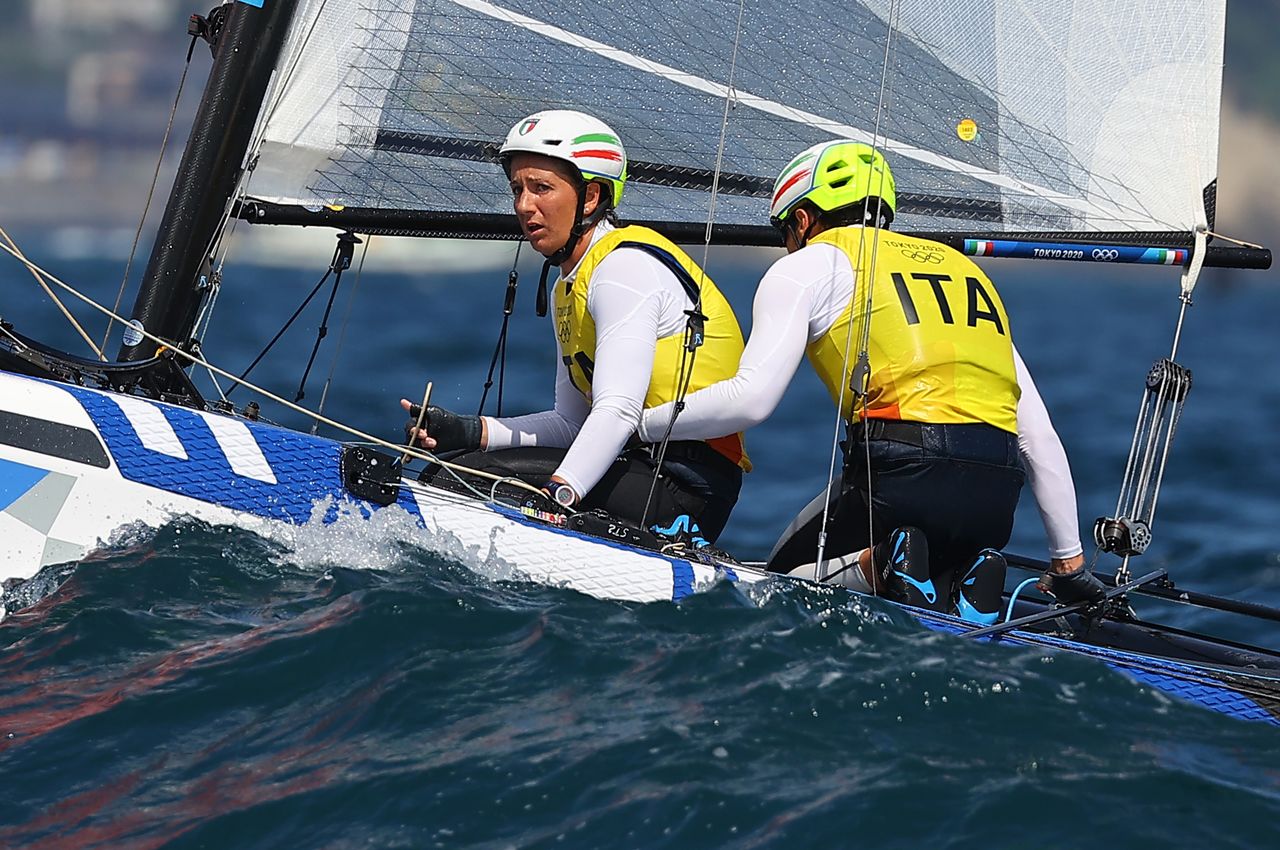 Earlier in the day, the Italian pair of Ruggero Tita and Caterina Banti put in a strong showing to head into Tuesday's medal race in the Nacra mixed class guaranteed a medal.