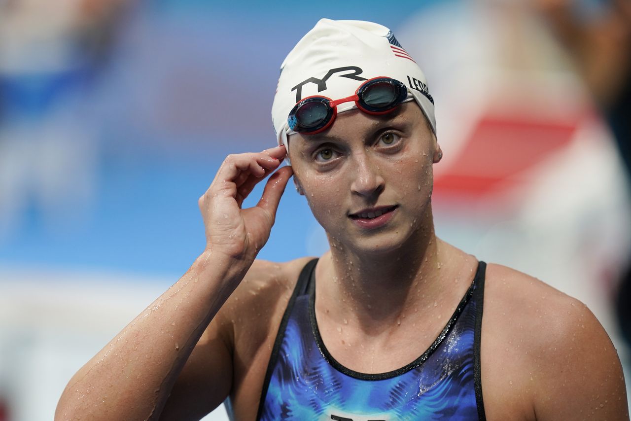 Jul 28, 2021; Tokyo, Japan; Katie Ledecky (USA) after the women's 800m freestyle heats during the Tokyo 2020 Olympic Summer Games at Tokyo Aquatics Centre. Mandatory Credit: Grace Hollars-USA TODAY Sports