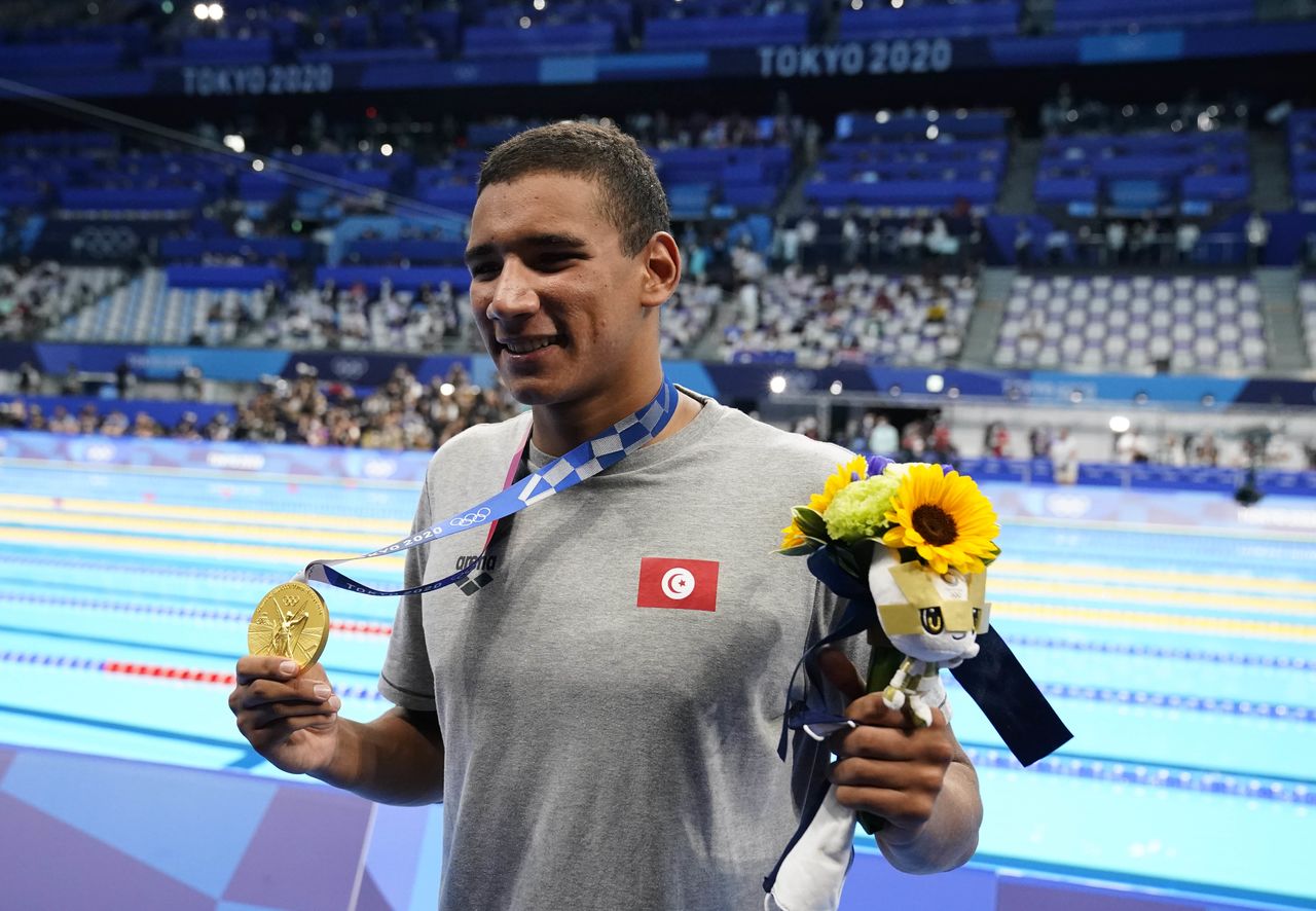 FILE PHOTO: Jul 25, 2021; Tokyo, Japan; Ahmed Hafnaoui (TUN) celebrates with his gold medal during the medals ceremony for the men's 400m freestyle during the Tokyo 2020 Olympic Summer Games at Tokyo Aquatics Centre. Mandatory Credit: Rob Schumacher-USA TODAY Network