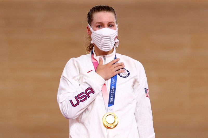 American Jennifer Valente avoided the mayhem https://www.reuters.com/article/olympics-2020-ctr/update-1-olympics-cycling-american-valente-wins-gold-in-crash-hit-omnium-idUSL4N2PF01L to become her country's first female Olympic track cycling champion, although she also suffered a late scare when she crashed in the omnium's points race.