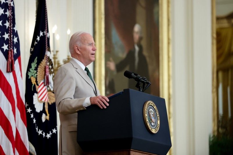 FILE PHOTO: U.S. President Joe Biden delivers remarks on employment numbers at the White House in Washington, U.S. August 6, 2021. REUTERS/Jonathan Ernst