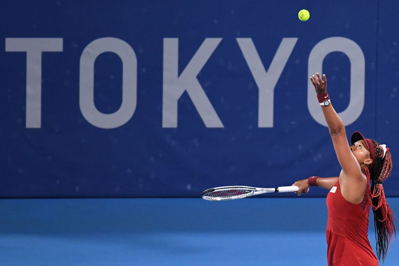 FILE PHOTO: Tokyo 2020 Olympics - Tennis - Women's Singles - Round 3 - Ariake Tennis Park - Tokyo, Japan - July 27, 2021. Naomi Osaka of Japan in action during her third round match against Marketa Vondrousova of Czech Republic REUTERS/Piroschka Van De Wouw