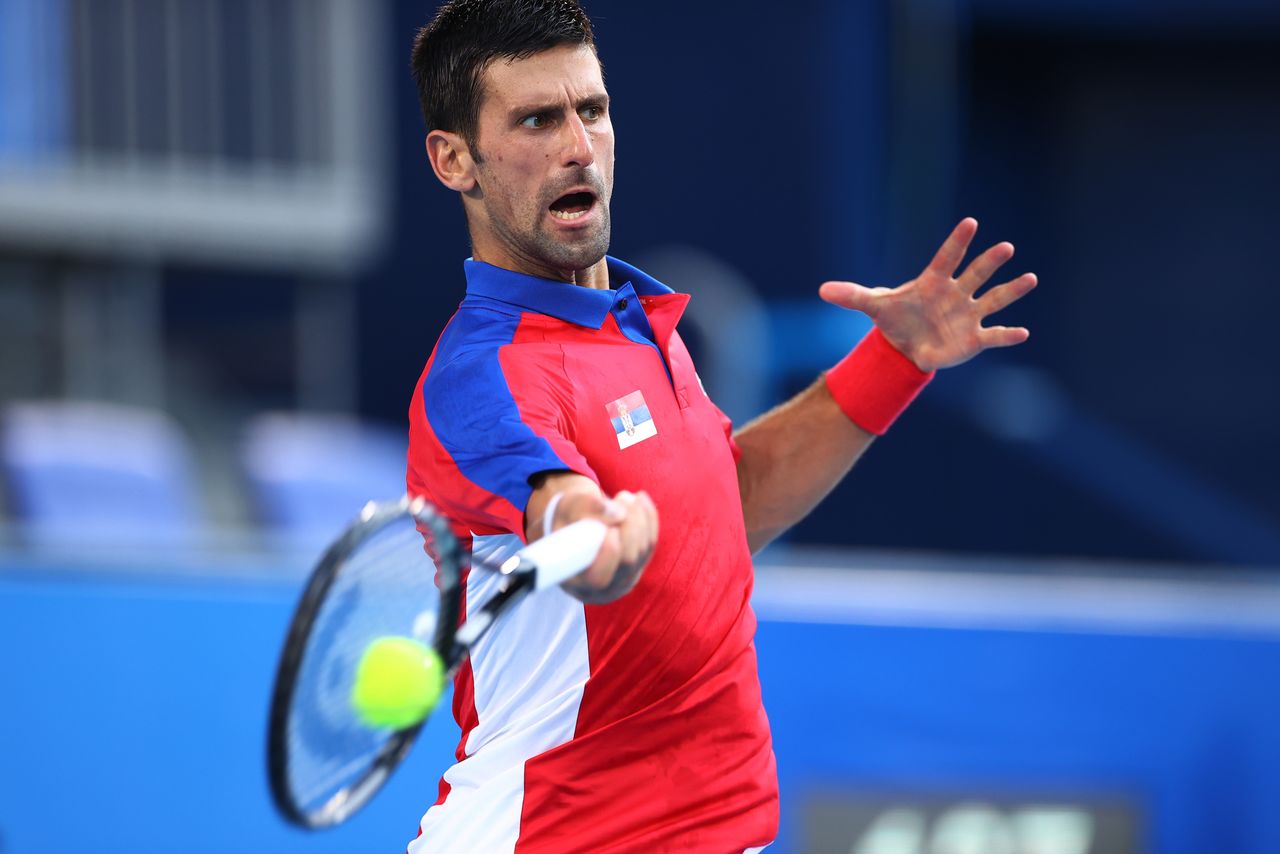 FILE PHOTO: Tokyo 2020 Olympics - Tennis - Men's Singles - Bronze medal match - Ariake Tennis Park - Tokyo, Japan - July 31, 2021. Novak Djokovic of Serbia in action during his bronze medal match against Pablo Carreno of Spain REUTERS/Edgar Su/File photo