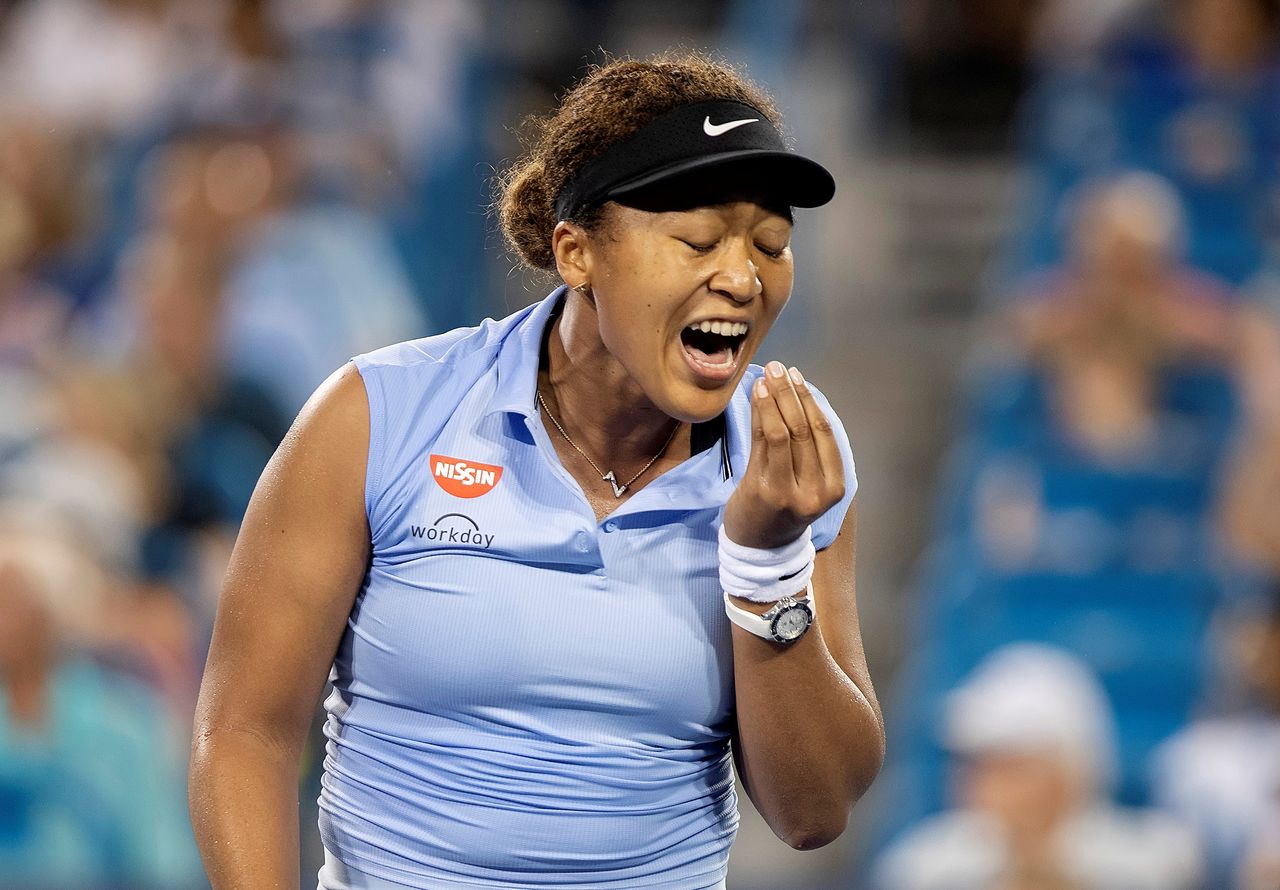 FILE PHOTO: Aug 19, 2021; Mason, OH, USA; Naomi Osaka (JPN) reacts during a match against Jil Teichmann (SUI) during the Western and Southern Open at the Lindner Family Tennis Center. Mandatory Credit: Susan Mullane-USA TODAY Sports