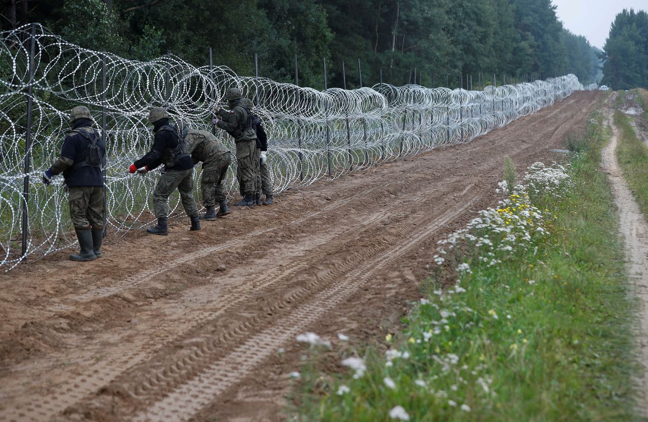 Poland began building a barbed wire fence last week along the border in an effort to curb the flow of migrants from countries such as Iraq and Afghanistan crossing from Belarus.
