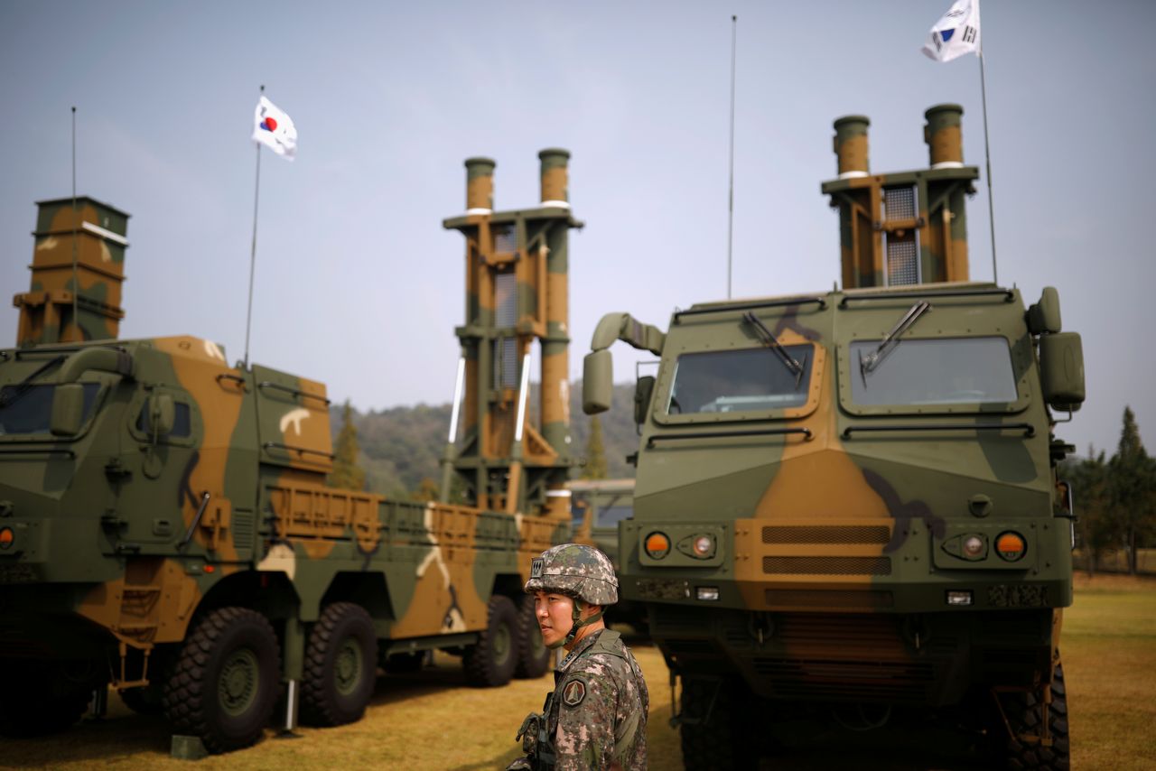FILE PHOTO: A South Korean soldier walks past Hyunmoo-2 (L) and Hyunmoo-3 ballistic missiles ahead of a celebration to mark the 69th anniversary of Korea Armed Forces Day, in Pyeongtaek, South Korea, September 25, 2017. REUTERS/Kim Hong-Ji/File Photo