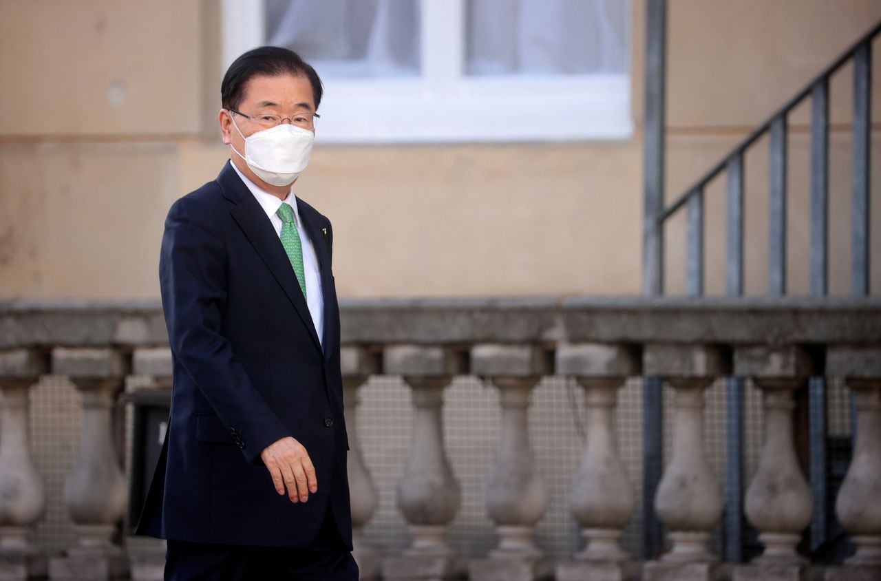 South Korea's Foreign Minister Chung Eui-yong arrives as G7 foreign ministers meet at Lancaster House in London, Britain, May 5, 2021. REUTERS/Hannah McKay/Pool/Files
