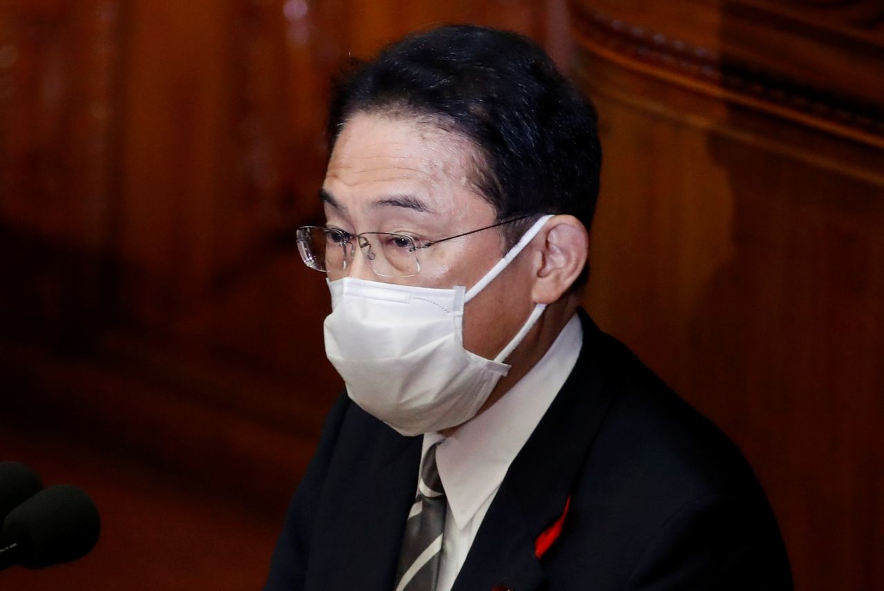 FILE PHOTO: Japan's new prime minister Fumio Kishida delivers his first policy speech at parliament in Tokyo, Japan, October 8, 2021. REUTERS/Kim Kyung-Hoon