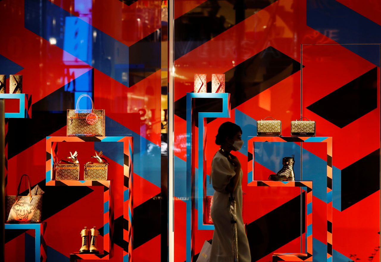 A woman wearing a protective mask, amid the coronavirus disease (COVID-19) outbreak, walks past a luxury retail store at Ginza shopping district in Tokyo, Japan, October 7, 2021. REUTERS/Kim Kyung-Hoon