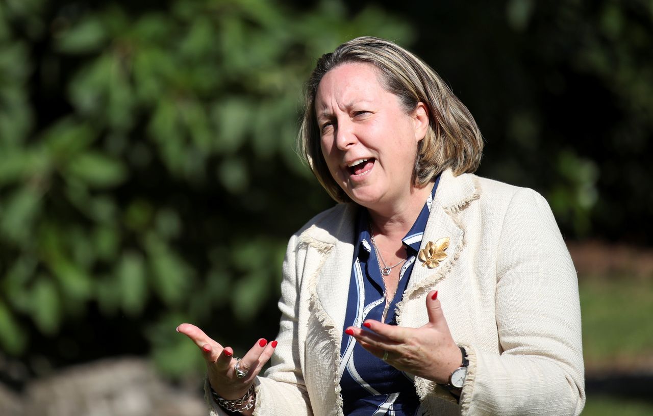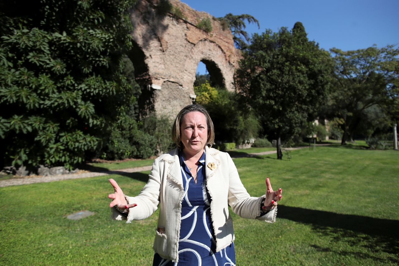 Britain's trade minister Anne-Marie Trevelyan speaks during an interview with Reuters, in Rome, Italy, October 13, 2021. REUTERS/Yara Nardi