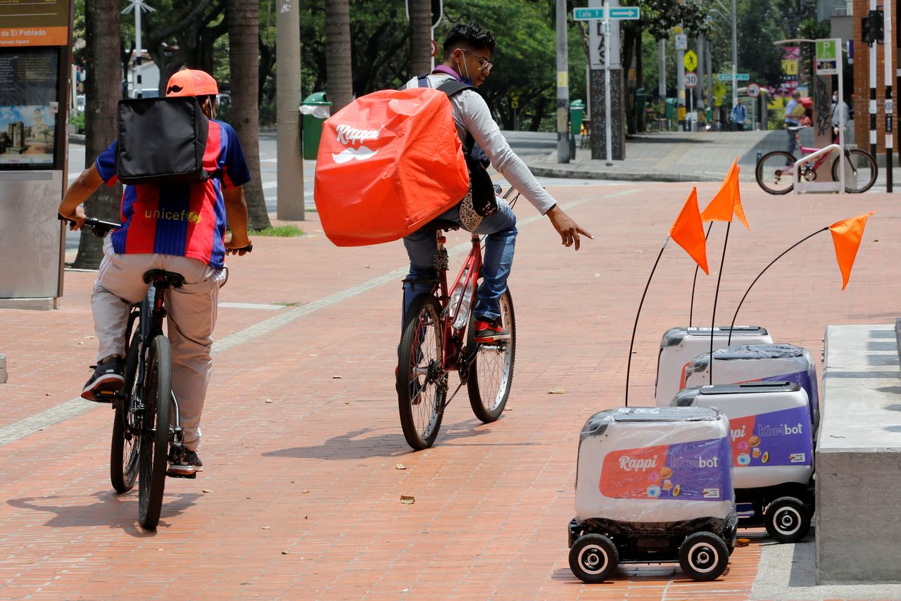 FILE PHOTO: Rappi delivery workers observe delivery robots from the Colombian company Rappi, amid the coronavirus disease (COVID-19) outbreak in Medellin, Colombia April 17, 2020. REUTERS/David Estrada