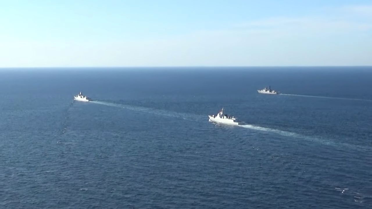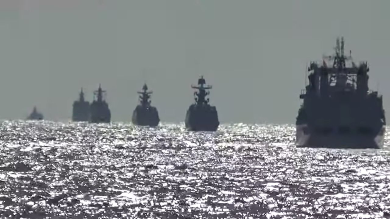 A group of naval vessels from Russia and China conduct a joint maritime military patrol in the waters of the Pacific Ocean, in this still image taken from video released on October 23, 2021. Russian Defence Ministry/Handout via REUTERS
