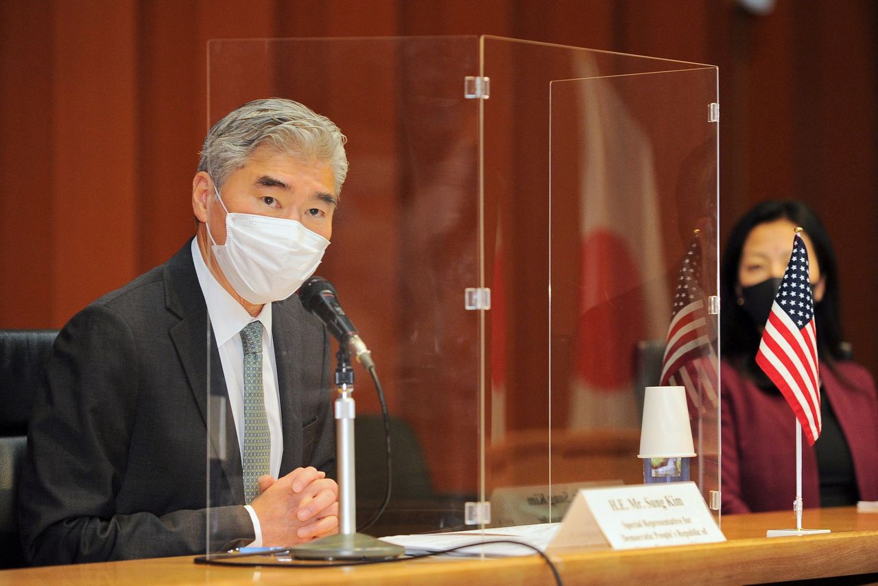 FILE PHOTO: Sung Kim, U.S. Special Envoy for North Korea, speaks during trilateral meeting between Japan, U.S., and South Korea, to discuss North Korea, in Tokyo, Japan, September 14, 2021. David Mareuil/Pool via REUTERS/File Photo