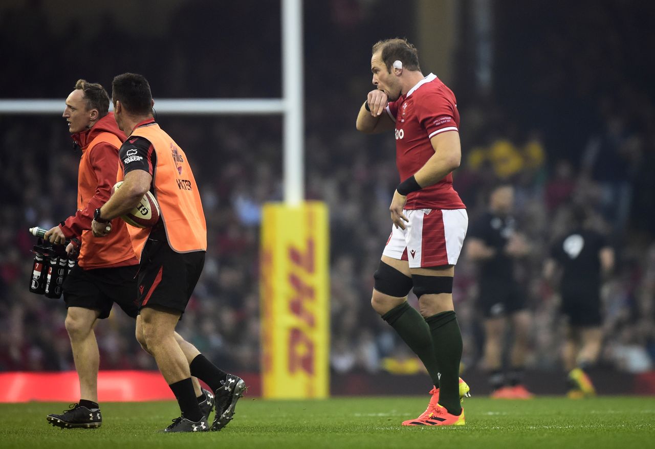 Rugby Union - International Test - Wales v New Zealand - Principality Stadium, Cardiff, Wales, Britain - October 30, 2021 Wales' Alun Wyn Jones leaves the pitch to receive medical attention after sustaining an injury REUTERS/Rebecca Naden