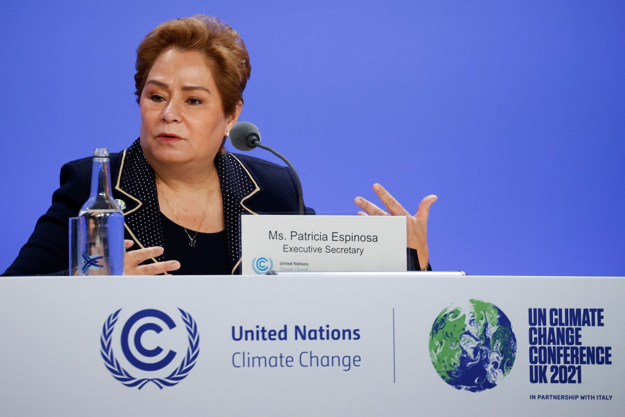 Executive Secretary of the United Nations Framework Convention on Climate Change, Patricia Espinosa holds a press conference during the UN Climate Change Conference (COP26) in Glasgow, Scotland, Britain October 31, 2021. REUTERS/Phil Noble