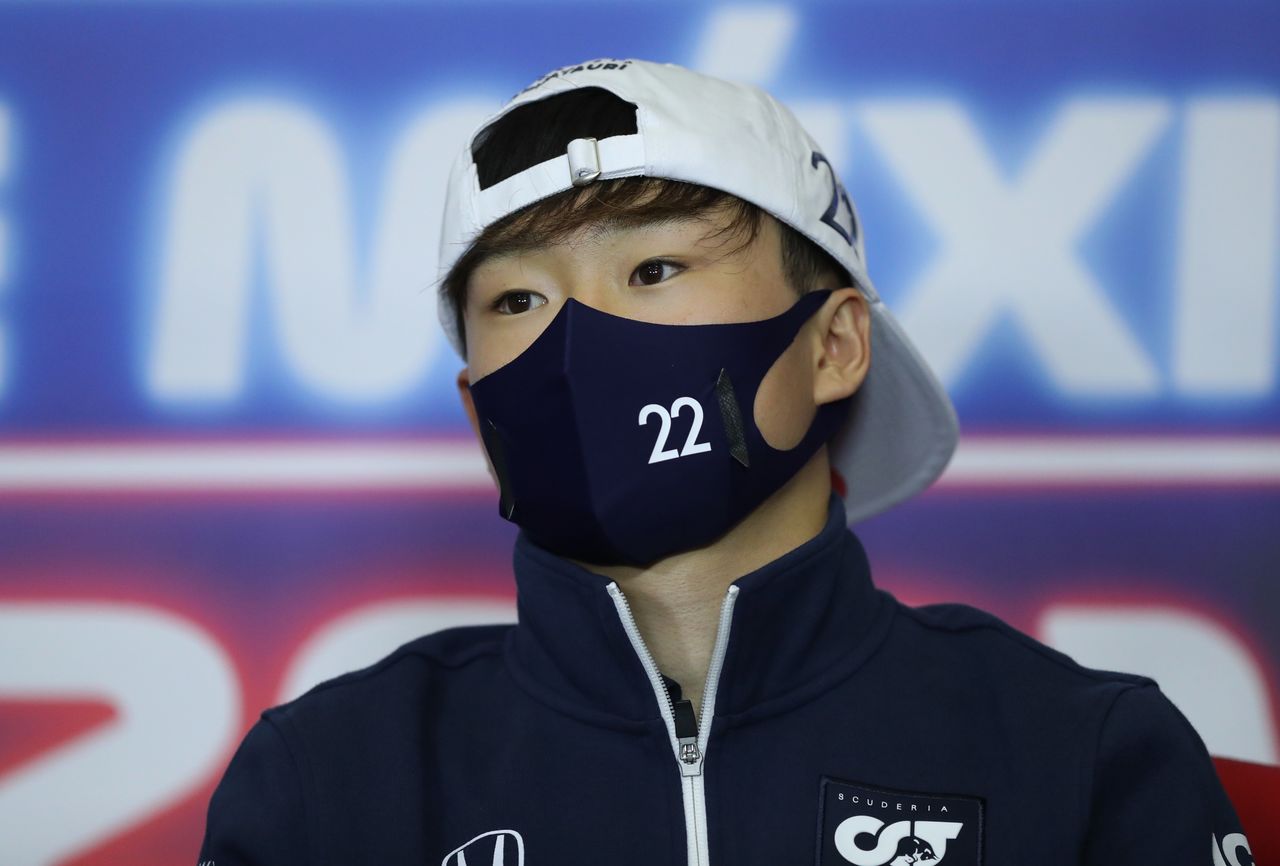 FILE PHOTO: Formula One F1 - Mexico Grand Prix - Autodromo Hermanos Rodriguez, Mexico City, Mexico - November 4, 2021 AlphaTauri's Yuki Tsunoda during the press conference Pool via REUTERS/Edgard Garrido