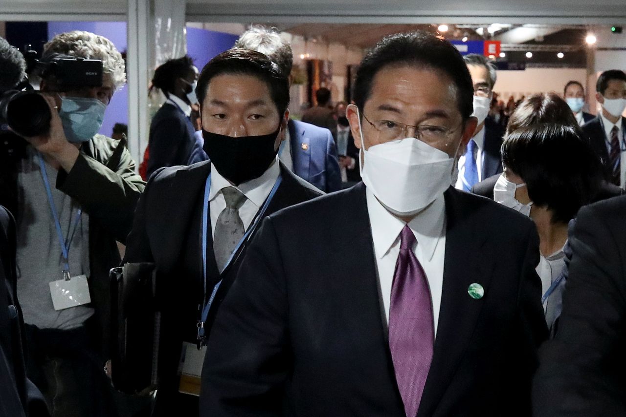 FILE PHOTO: Japan's Prime Minister Fumio Kishida walks during the UN Climate Change Conference (COP26) in Glasgow, Scotland, Britain, November 2, 2021. REUTERS/Yves Herman
