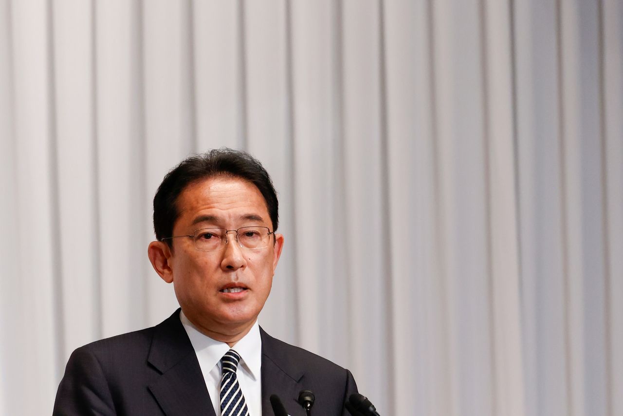 FILE PHOTO: Japan's Prime Minister and ruling Liberal Democratic Party (LDP) leader Fumio Kishida speaks during a news conference at the party headquarters after his party won majority seats (in coalition with the Komeito party) at Japan’s lower house in the general elections, in Tokyo, Japan, November 1, 2021. Rodrigo Reyes Marin/Pool via REUTERS