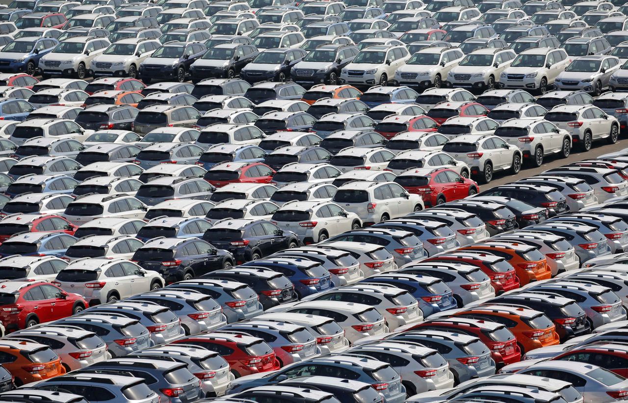 FILE PHOTO: Subaru cars await export from Yokohama, Japan, May 30, 2017. REUTERS/Toru Hanai