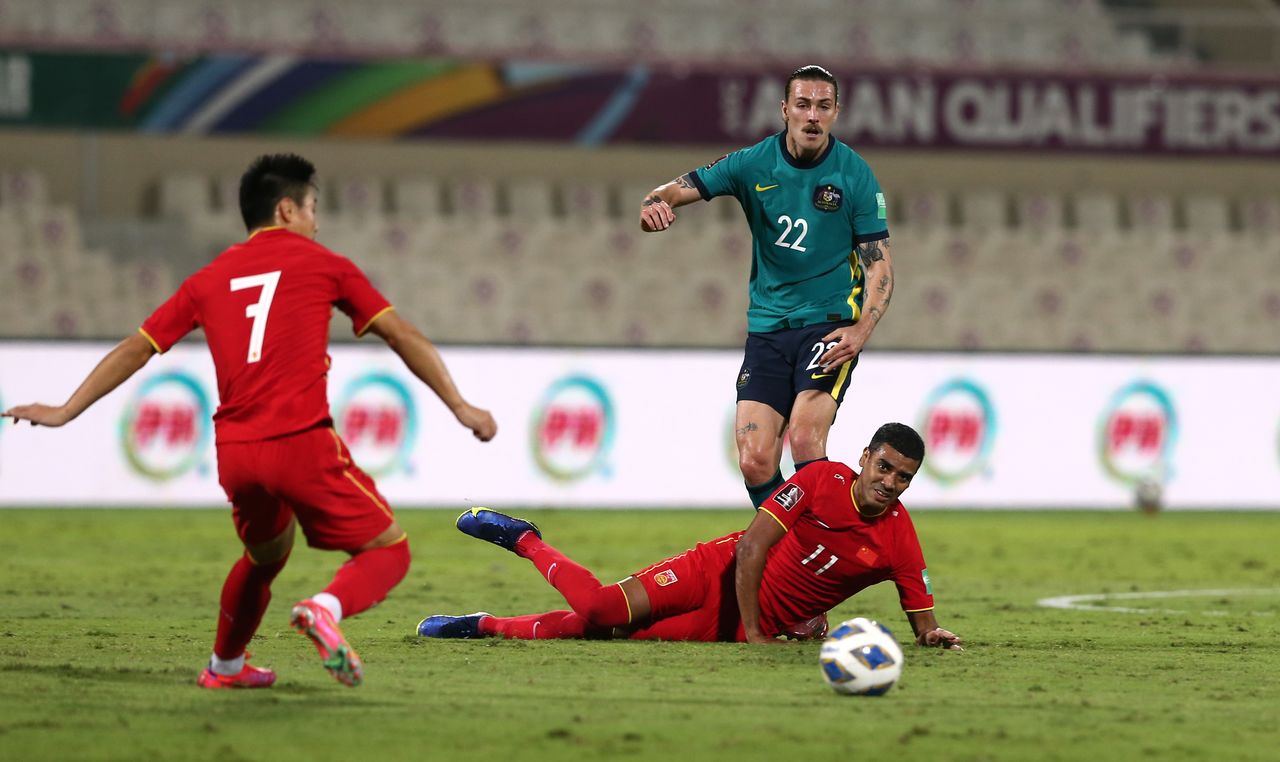 Wu got the chance to pull China level when Jeggo's raised arm made contact with a lofted ball into the area and, after checking the pitchside monitor, referee Adham Makhadmeh pointed to the spot.