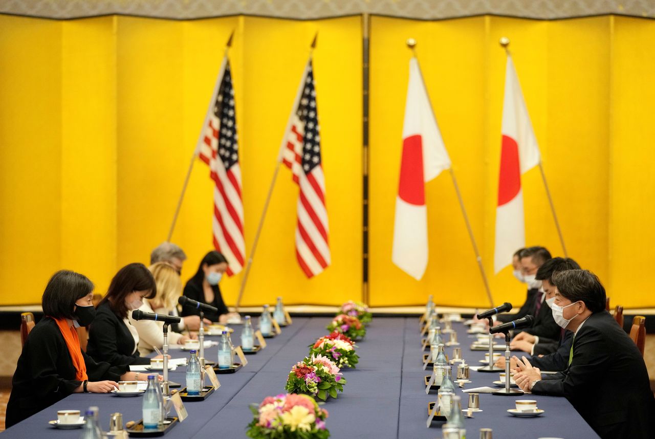 U.S. Trade Representative Katherine Tai speaks to Japanese Foreign Affairs Minister Yoshimasa Hayashi at the start of their meeting at the Iikura Guest House in Tokyo, Japan, November 17 2021. Franck Robichon/Pool via REUTERS
