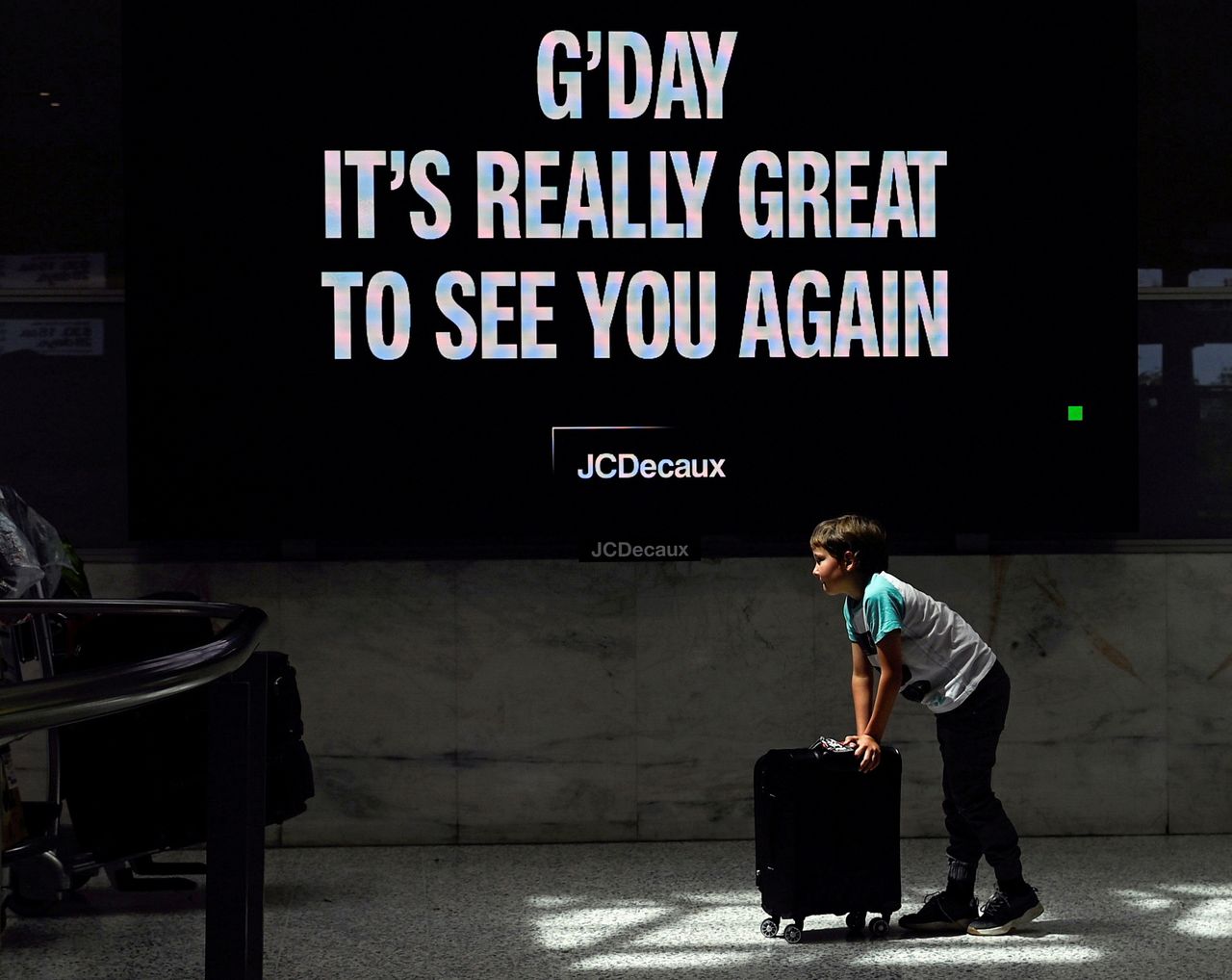 FILE PHOTO: Airport staff hold up welcome signage as the first international travellers arrive at Sydney Airport in the wake of coronavirus disease (COVID-19) border restrictions easing, with fully vaccinated Australians being allowed into Sydney from overseas without quarantine for the first time since March 2020, in Sydney, Australia, November 1, 2021. REUTERS/Jaimi Joy